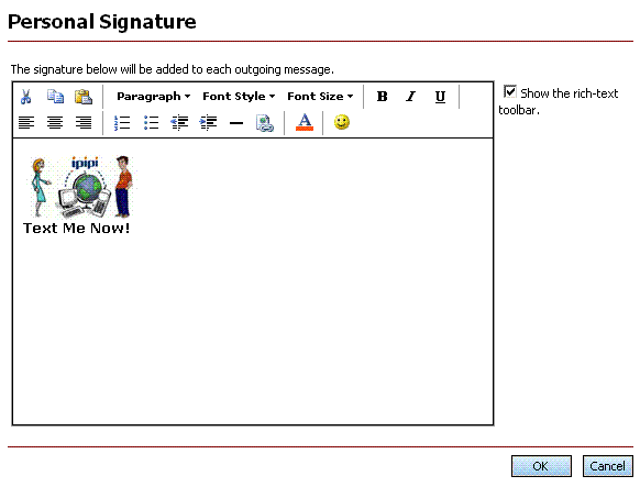 Here are some examples on how to add Text Me Now to a signature in
