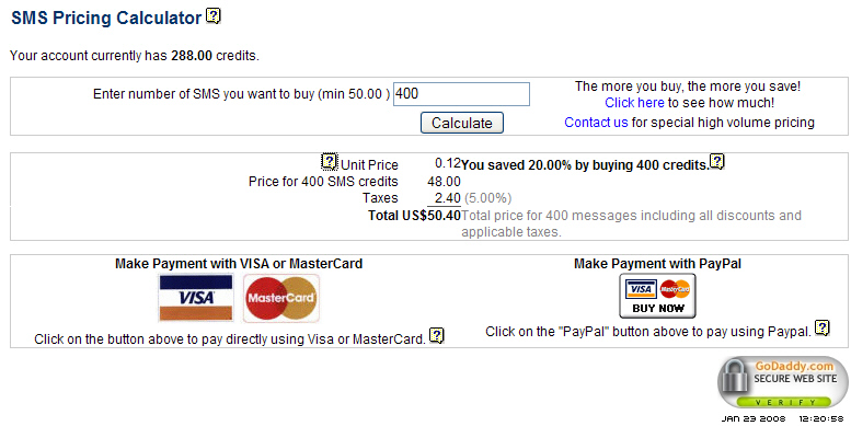 Once the cost has been calculated, click on the PayPal logo at the bottom of the screen. Payment via PayPal includes money transfer, Visa, MasterCard, American Express or Discover card.