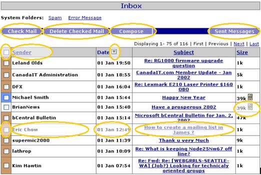 Your account comes with a powerful email account. You inbox is where all your email and SMS will come. With your account, you can even forward these messages to your phone. You can also use your email account to compose and send new messages. We want to give you as many was as possible to read and send your email and SMS. You can connect to your ippi account using any standard client email. The figure below describes different screen elements and commands in your Inbox.